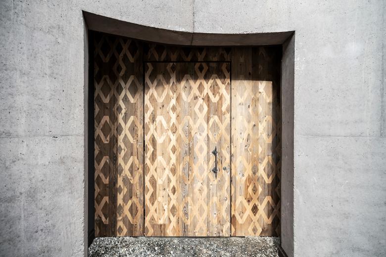 The newly opened wellness facility - the hotel’s new centrepiece - has no Northside facade, instead, it blends into a natural green slope so that the building can hardly be seen. The entrance to the new spa is a curved semi-exposed concrete shell that tucks into the landscape and is designed with a stunning portal made from old wood. Here, in the interface between the surface and subsurface, the word immersion takes on a meaning of its own. The Southside of the wellness area, on the other hand, opens up with a glass and steel facade that vanishes underneath a blanket of rooftop greenery. The steel canopy, on which fragrant jasmine flowers will climb, protrudes upwards into the open sky, reminiscent of the holding structures used in modern apple cultivation.
