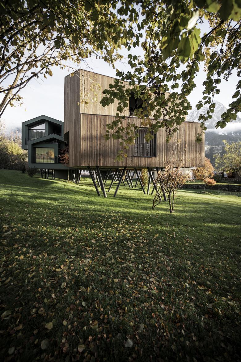 The coherent interior colour concept, the consistency of architectural touches such as the soffits of the suites clad in larch wood, and the discreet but deliberate irregularities of the tree houses enhance the quality of stay for guests at the Florian Hotel. The enthusiasm of the architects is palpable in every detail and will find its resonance in visitors, who despite of the new structure will be able to take full advantage of the park, which has been the guiding principle for this project from the very beginning.