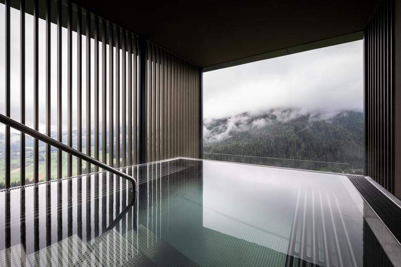 For its latest South Tyrolean realisation, NOA returns to Hubertus in Olang, one of the first places to have revealed the studio's expressive power. After the iconic cantilever pool, a new suspended platform defies gravity law by overturning the concept of wellbeing.