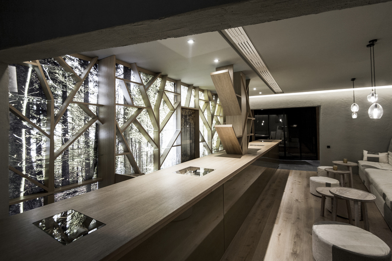 The team of architects, designers, psychologists, hunters, textile designers and lighting artists invented a bottom up-approach for the entire project. “things were pretty much all there already, but elements were out of sight, they did not communicate with each other and were hiding beneath the forest, the farm and the existing hotel”, explains Stefan Rier, co-founder of noa*.