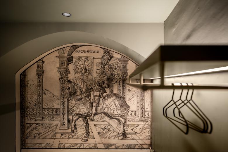 It is not only irregular forms that evoke history. Murals discovered during the project tell stories whose authors remain unknown. The Weisses Kreuz is making a fresh start with a new concept, and at the same time it is full to the brim with surprises and secrets. The dreams and anecdotes of times gone by extend all the way to the loft, whose glass openings put the starry sky within reach.