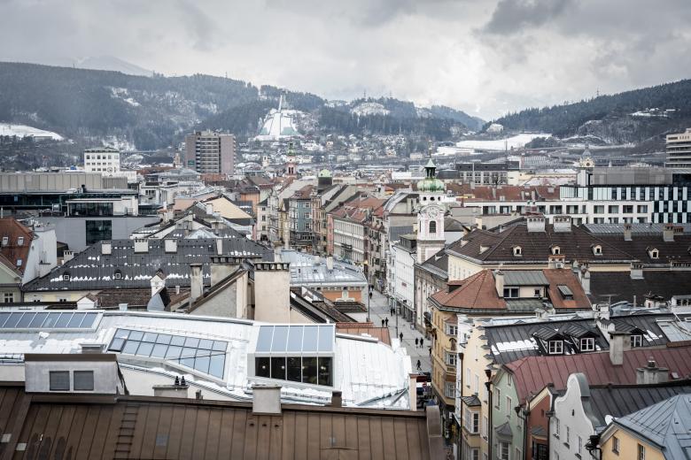 Not far from the famous Goldenes Dachl (Golden Roof), the Altstadthotel has always been a popular destination for famous travellers and historical celebrities, among them Wolfgang Amadeus Mozart, who stayed there as a 13-year-old in 1769. The building is narrow and elongated towards the rear, its front-facing arcade blends perfectly with the historical fabric of the city. During the redesign, a loft level was added to the existing six storeys, which have been extended with delicacy and professional finesse, while respecting the conservation rules. The new loft is meticulously choreographed: on the one hand, it remains alive to the neighbourhood and cityscape by retaining its original slope towards the street-facing front elevation, but at the rear it rises in height and opens up through six glass cubes offering wonderful views over the city skyline. From here, guests can enjoy a unique panorama, taking in the Pulverturm, ski jump and Nordkette.