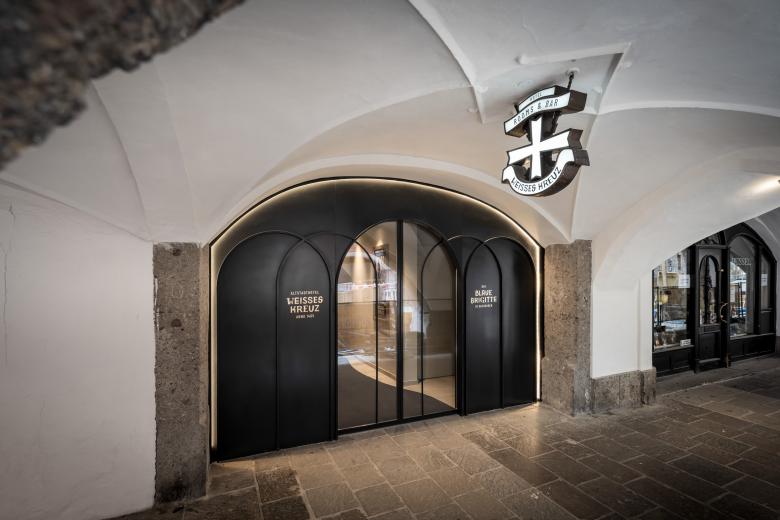 No right angles in sight here: the venerable house in Herzog-Friedrich-Straße, which dates from the 1460s, is a building in Innsbruck's historic streets whose architecture is inflected with architectural elements from a wide range of historical eras, having undergone constant transformation. Yet the distinct features of each period coalesce in timeless fashion to form a symbiosis of urbanism. In keeping with the rhythm of change over the centuries, the Hotel Weisses Kreuz fits into this pattern, providing a uniquely appealing architectural challenge for noa*.