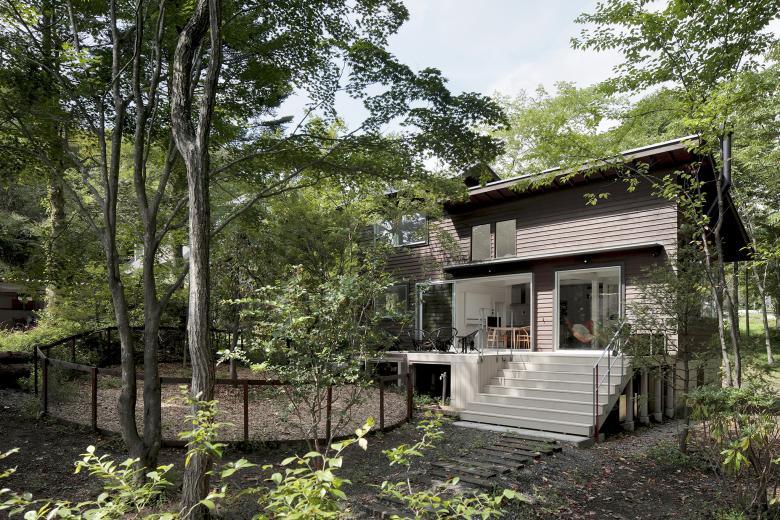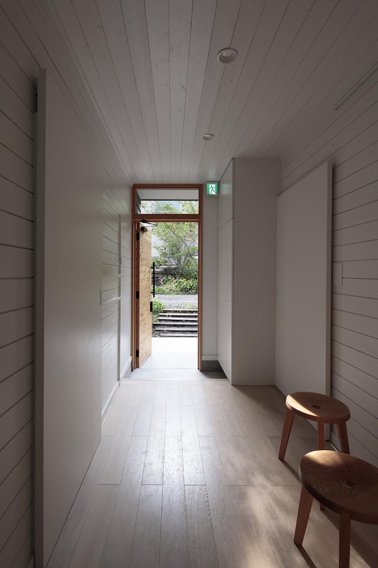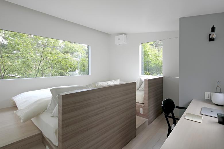 軽井沢の森の中にある、築35年の民家を一棟貸しのホテルへ改修する計画。 豊かな四季を一年中楽しめるよう、窓に着目し外部環境との繋がり方について再考することにした。 開口部の配置と形状を操作し、窓からの景色の連なりで森に囲まれているような作ることを考えた。 白く塗り込められた空間は、壁の裏に広がる風景を想像させる。 切り取られた風景が連続することで、実際の空間よりも大きな広がりと様々な外部との繋がり方が生まれた。 室内に居ながらも自然環境を感じ取れる体験を期待している。