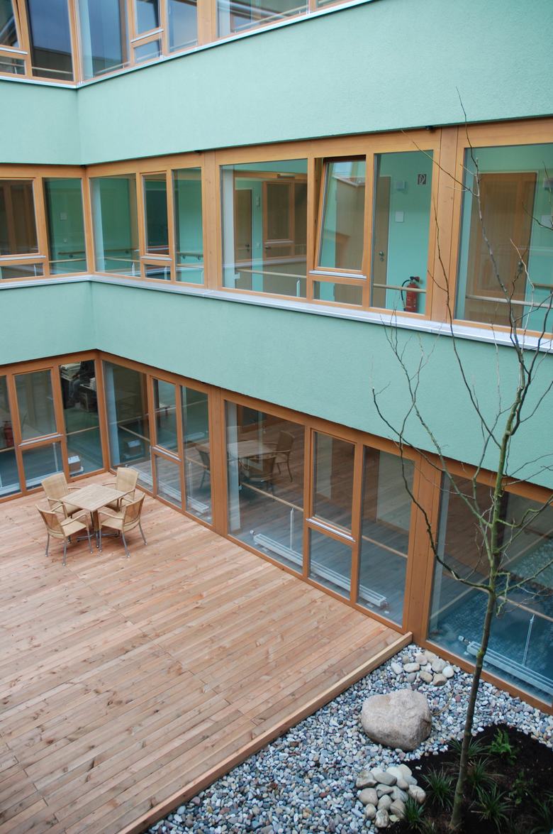 Zwischen den beiden Baukörpern befindet sich ein Hof, der den Bewohnern zur Erholung dient oder auch für festliche Anlässe genutzt werden kann.