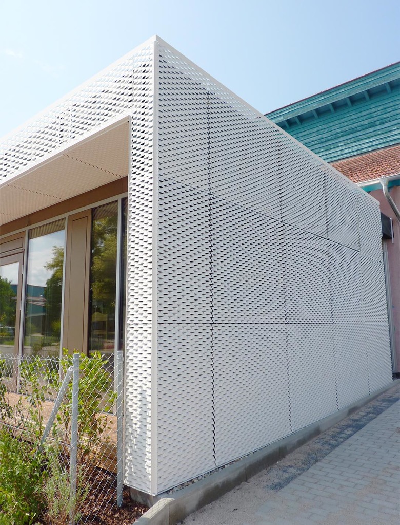 Anbau- und Umbau an ein bestehendes Kinderhaus • Hort mit Personal-, Intensivraum und Funktionsräumen • Umbau Bestandsbereich zu Kinderkrippe • Holzbau • Streckmetallfassade