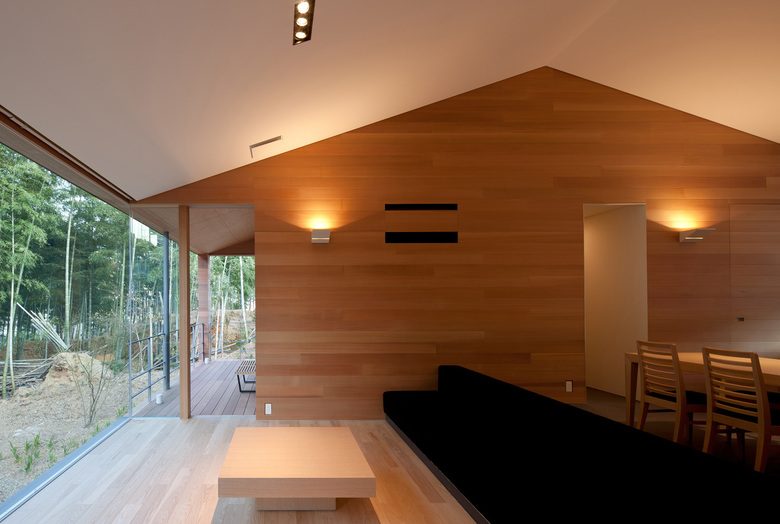 北・東面は積極的に開口を設け、庭と奥に広がる竹林を楽しめる。