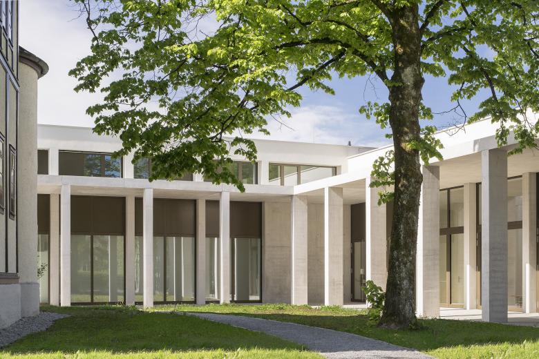 Mit der städtebaulichen Setzung wird versucht, einen lesbaren Rhythmus mit Haus und Raum aufzubauen. Die architektonische Sprache sucht zuerst die Verwandtschaft. In Dimension, Material und Farbe, volumetrischer Differenzierung, mit vorgesetzten Strukturen, Vor- und Rücksprüngen und dem sich einstellenden Spiel von Licht und Schatten wird Kompatibilität hergestellt. Die Gestaltung des Außenraumes orientiert ich größtenteils am Bestand und soll sich wie selbstverständlich in den Grünraum der Rosenstraße einfügen. Bepflanzung und Wegeführung um die Kirche bleiben bestehen bzw. werden im Sinne des Vorhandenen ergänzt.