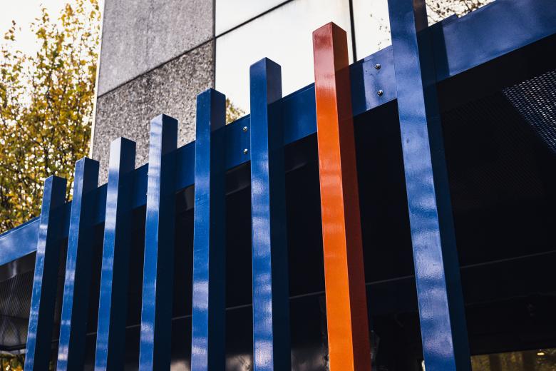 “Una delle sfide di questo progetto è stata quella di creare una struttura autoportante.” Racconta l’architetto. “Una struttura che non avesse necessità di essere ancorata alla facciata. Avvalendoci del prezioso contributo di Gr Group per la realizzazione, abbiamo progettato una solida struttura in alluminio rivestita con pannelli alveolari dello stesso tono di blu che contraddistingue l’interior, per creare un continuum che introduca i visitatori e i lavoratori agli spazi interni.”