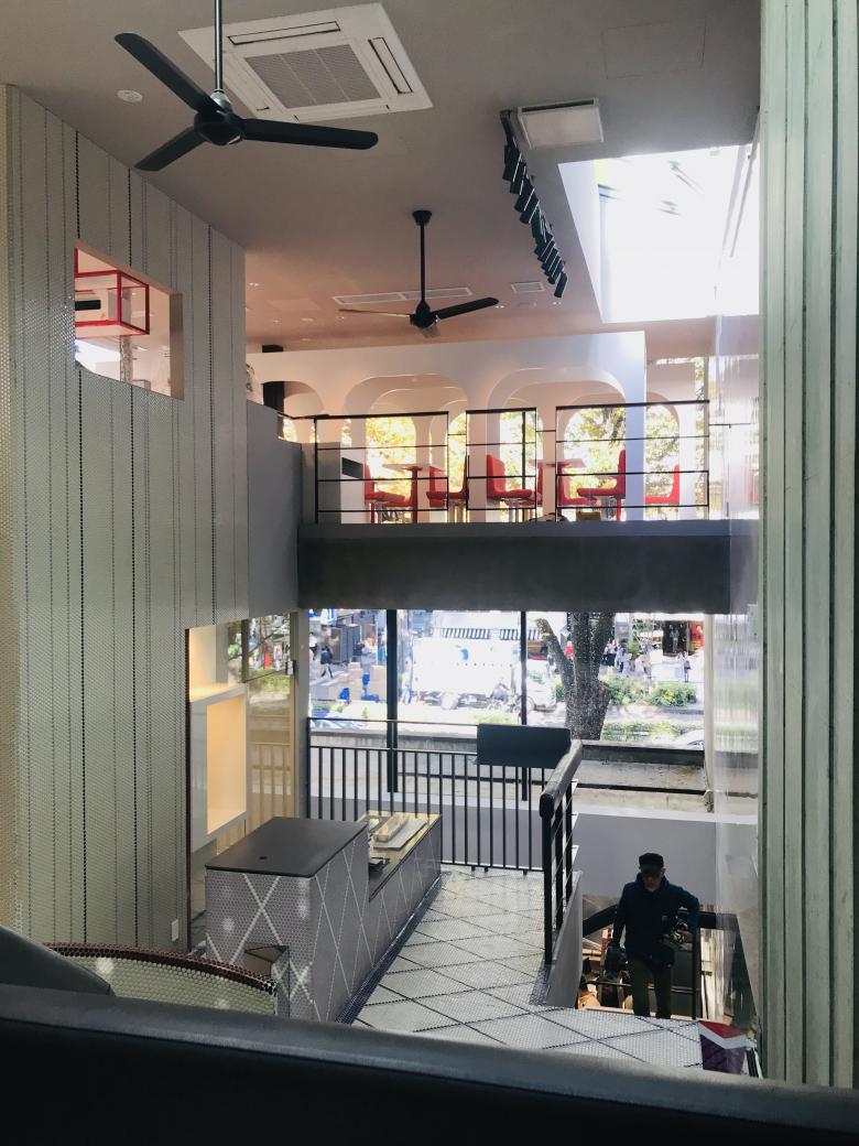 外皮となるガラスファサードは、スチールマリオンにシームレスな合わせガラスを採用することで、モノリシックな重量感を孕み、表参道を行き交う人々やケヤキ並木を映し出すと共に、陽が沈むとインテリア空間が浮かび上がり、客を誘うという二面性を持つ建築となった。内部は4層にスキップしており、それぞれのゾーンは独自のシーンコンセプトで分けられているものの、吹抜けとトップライトにより開放感のある空間構成となっている。商業施設の開発でありがちな建築工事(A工事)、内装工事(C工事)といった区分を取り払い、建築とインテリアがオーバーラップして、監理も共同で当たったため、異なる業者間の調整やコーディネイトなど手間取ることも多いものの、その分現場は燃えるし、何よりもライブ感がある。インテリアデザイナーと建築家、職人たちが妥協せずに作った空間は異質である。かけた手間と気持ちの絶対量が違う・・・。そのオーラを感じていただきたい。