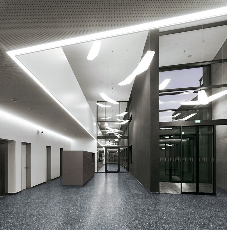 Im Foyer, direkt im Bereich des Haupteinganges, befindet sich die Kunst am Bau mit dem Titel „TONDO“, ein Rundbild, welches sich aus der Architektur selbst herausschält, die Architektur sichtbar verrückt und unabdingbar mit dem Ort verbindet.