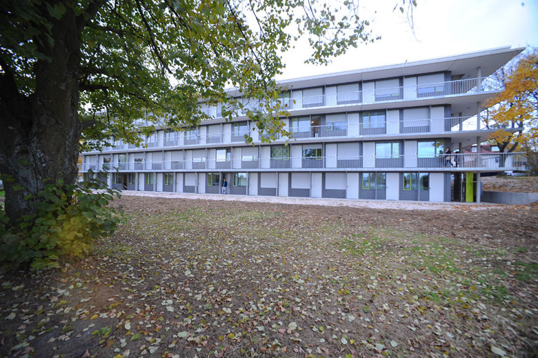 Auf den vier Geschossen sind insgesamt 107 Einzelappartements, jeweils mit eigener Sanitärzelle und Pantry-Küche, geplant. Zwei Appartements sind rollstuhlgerecht ausgestattet. Gemeinschaftsraum, Technik und Wäscheraum sind auf Ebene 0 untergebracht.