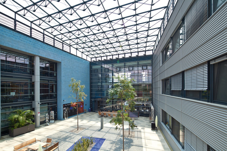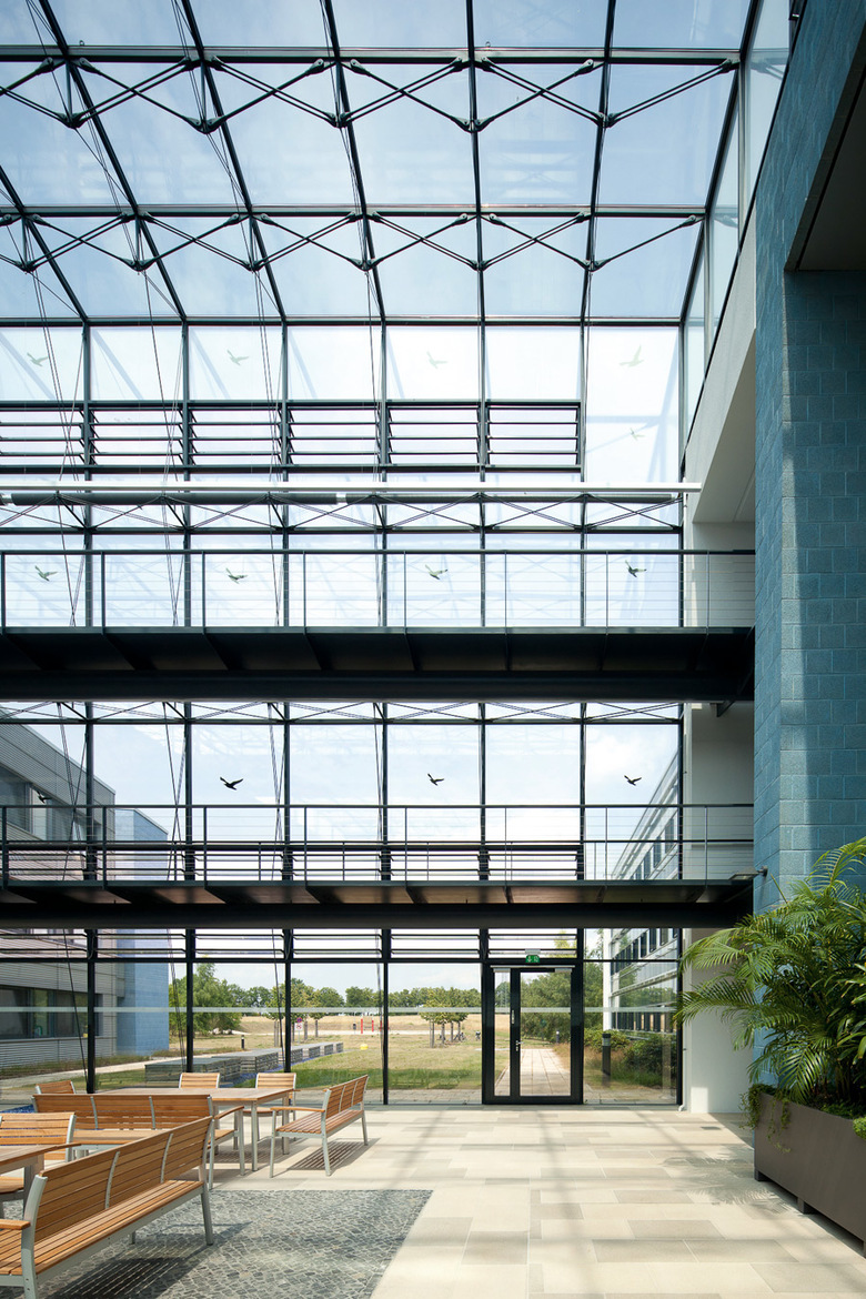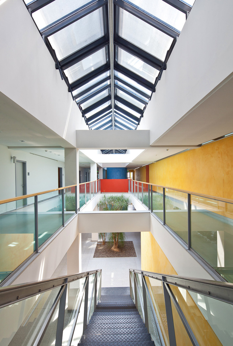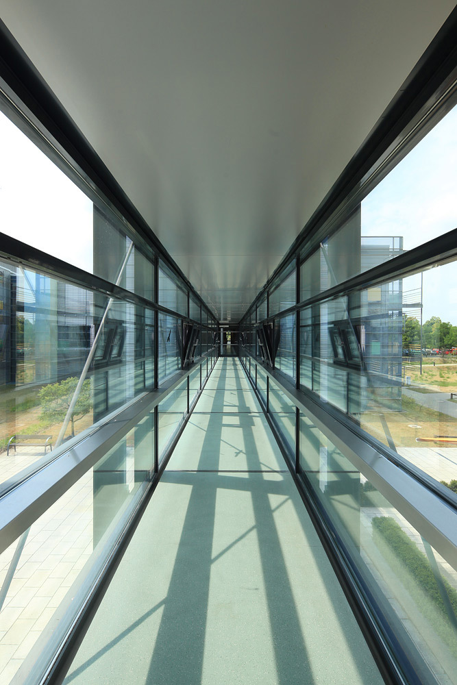 Besonderheiten und technische Innvoationen: Weit gespannte Flachdecken, Hoch installierte Gebäudeteile, Optimierte Aussteifung unter besonderen Randbedingungen der Haustechnik und Elektroinstallation.