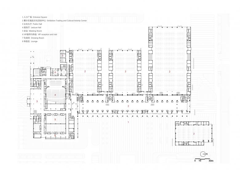 Public square, recreation areas, landscape parks, and open-air markets, among others, are arranged around the exhibition building. These places provide citizens with a multi-functional urban leisure space that not only facilitate efficient exhibition and commercial activities, but also serve citizens' recreational needs.