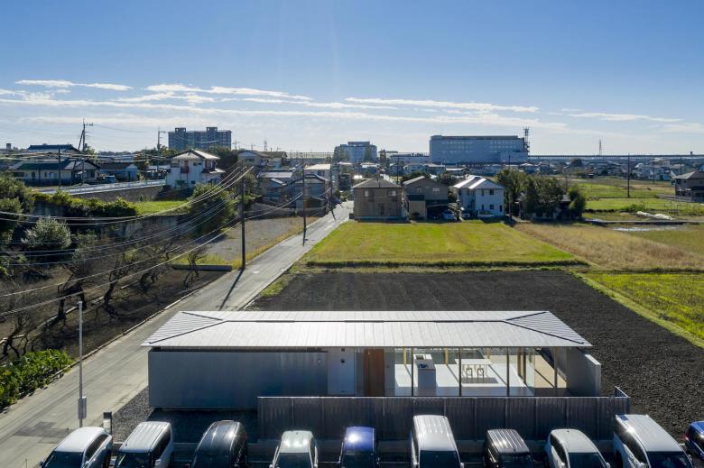 東京の郊外、畑や離散して建つ建物が拡がるのどかな田園風景の中に建つ住宅である。最初にこの敷地を訪ねた時に唐突に思い出した風景がある。それはリチャード・ノイトラの1937年に竣工したストラスモア・アパートメントの写真、それも建築そのものではなくその背景の自然を思い出したのだ。この建築はウエストウッドに建っている。その写真の背景に写る当時のウエストウッドは現在の緑溢れる風景からは想像もつかない、低木だけがまばらに生えた、それもほとんど砂漠に近いような背景であることに驚愕したのだった。東京近郊にそんな風景が存在するわけはないのはもちろんだが、そんな風景の中だからこそロスアンジェルスでは1950年代以降のケーススタディハウスが成立したのだと感じたことを唐突に思い出していたのだった。
