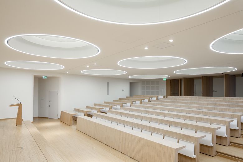 Der Neubau, in dem verschiedene Gehirnerkrankungen erforscht werden, befindet sich am südlichen Rand des Standorts Venusberg am Universitätsklinikum Bonn. Das Bauvolumen ist in drei markante, organisch geformte Einzelkörper aufgeteilt. Die Dreiteilung entspricht den inneren Funktionen: Dem Eingangsgebäude mit den allgemeinen Einrichtungen (Hörsaal, Cafeteria, Bibliothek) und klinischer Forschung, dem zentralen Forschungsgebäude mit den Laborbereichen für die Grundlagenforschung sowie dem präklinischen Institut.