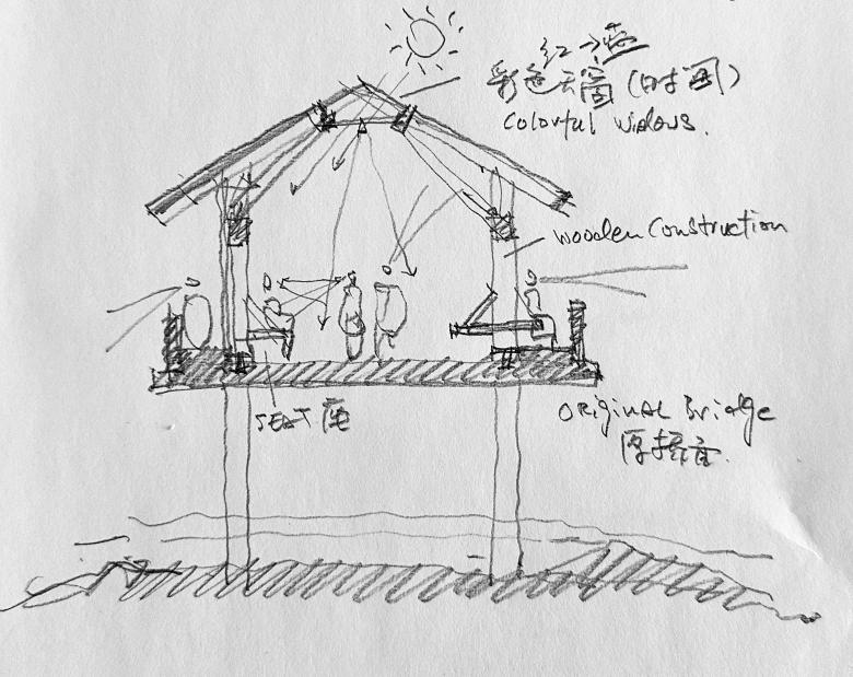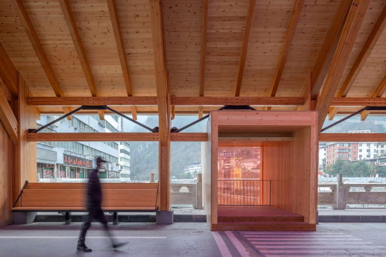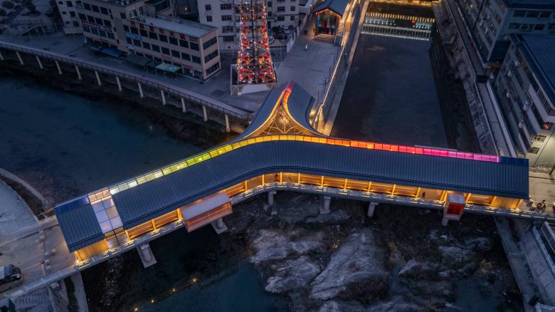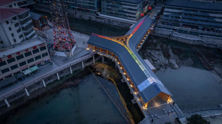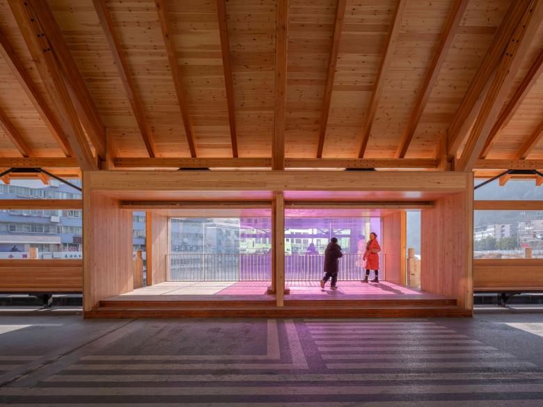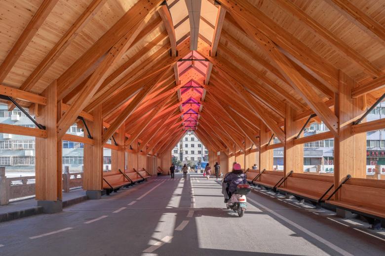 The inspiration of design comes from a local Qing Dynasty corridor bridge: Dragon and Phoenix Bridge. Corridor bridges are ancient Chinese bridges combining bridge and architecture, with passage in the middle and rest areas on both sides, effectively integrating transportation and non-transportation functions into one space.