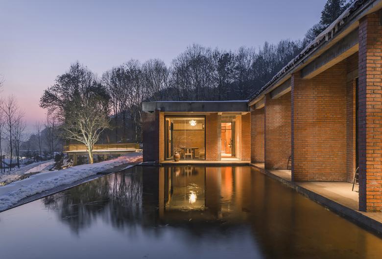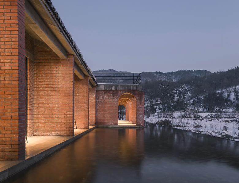 The design of the pool and the light and shade is strengthened the interest and drama of the building. Through the reflection and inverted image of the pool, and dramatic scene appeared from time to time in the path, the user is excited to stop, take photos and circle of friends. Besides, the heavy feeling and the monotony are greatly diluted by the buildings of single red brick materials.