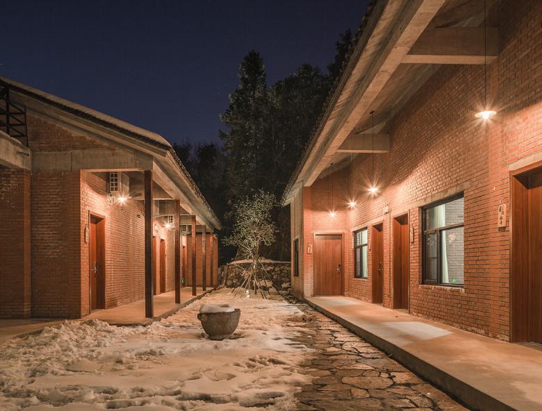 The other characteristics of B Gardens include courtyards and paths. Designers believe that the most attractive part of Chinese traditional architecture is the relationship among houses, courtyards and paths. The house and the yard are positive and negative relationship including physical space, inside and outside, open and closed in sight and psychology and so on; and the path is an "intervention" between the house and the yard, in the exterior and interior, without absolute indoor or outdoor identity. The function of the path is not only the connection of the traffic, but also the coherence and vagueness of the inside and outside of the space. In this project, the designer wishes to discuss the relationship of the three parts in the context of the farmhouse. Therefore the courtyards of many different spatial features are created, interspersed between buildings, separating the building from its surroundings and the buildings from the buildings, forming a blank. In addition to the functional role of these gaps, more is the needs in sight and psychological.