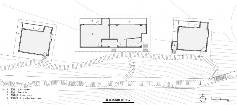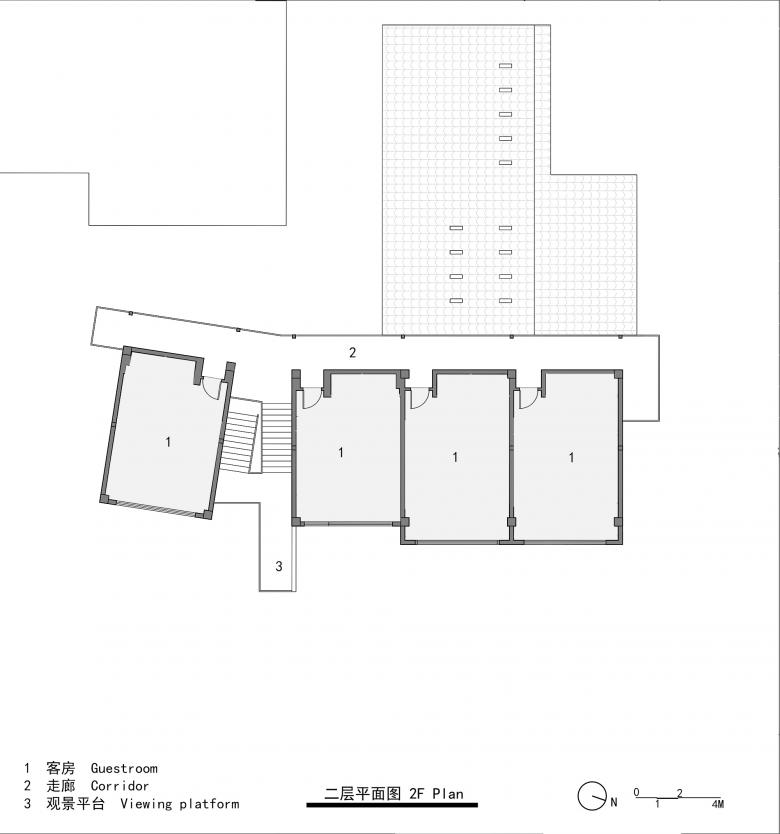 Because of the requirements of operation, a sufficient number of guest rooms (totally 25 rooms) need to be designed But in order not to damage the environment, the building is limited to a range of construction, which brings a problem to the architectural design: how to create as many comfortable guest rooms as possible in the limited site while the architectural shape should not be too high at the same time.