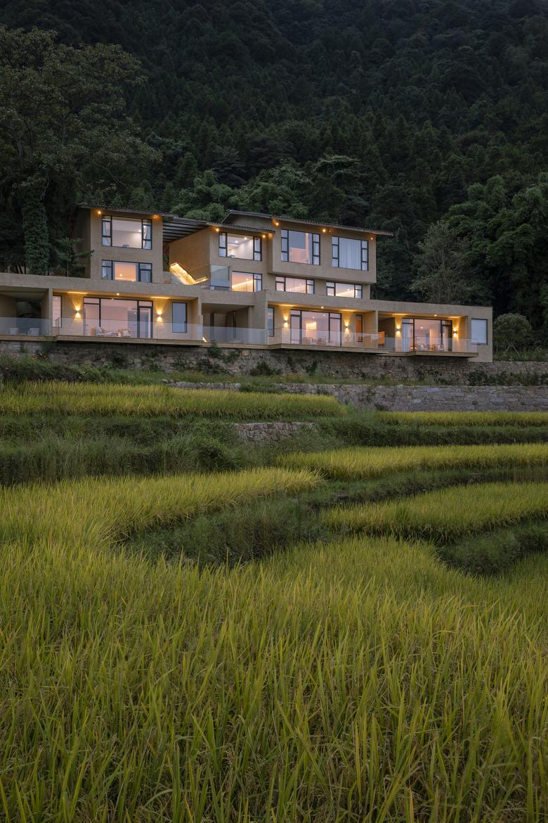 The Yuanbai B&B is mainly located at the foot of the mountain on the south side of the paddy field and consists of three two-storey buildings. Floor-to-ceiling glass windows are equipped on the side of the building facing the paddy field to introduce the good landscape into the guest rooms. The split layout ensures the privacy between the guest rooms and the sense of "family style" experience.