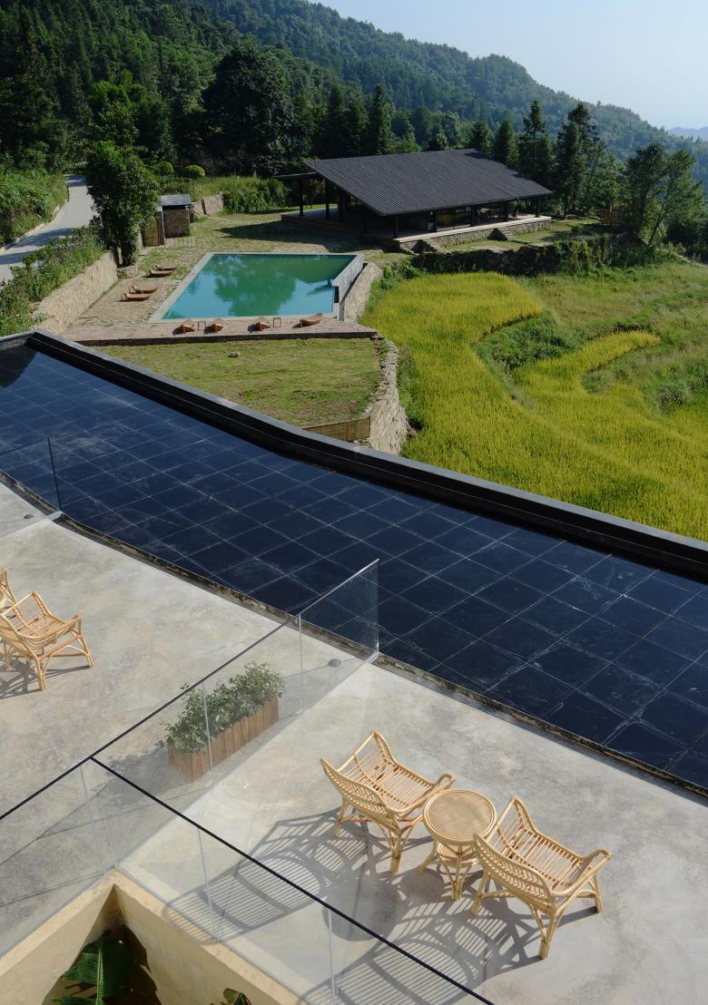 The outdoor swimming pool is reconstructed on the original site of the fish pond. This kind of treatment not only reduces the earthwork, but also forms dramatic tension of the scenery before and after the transformation. Today, infinity swimming pool has become the standard configuration of high-end B & B. The architect hopes to create an infinity swimming pool “in paddy field". With the improvement of the follow-up agricultural landscape, the swimming pool will be more closely combined with the paddy field. The swimming experience of smelling the fragrance of rice and touching the rice ears would be so romantic.