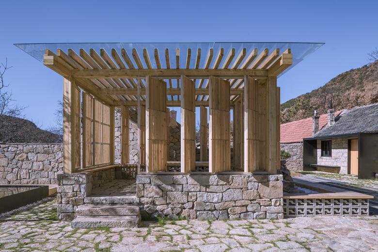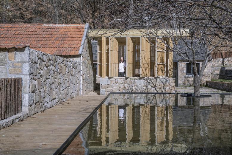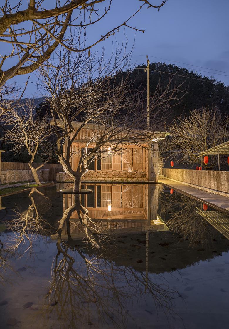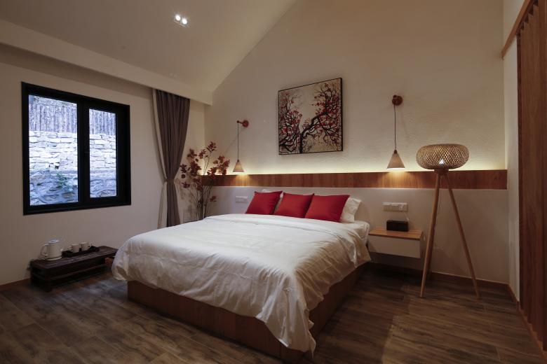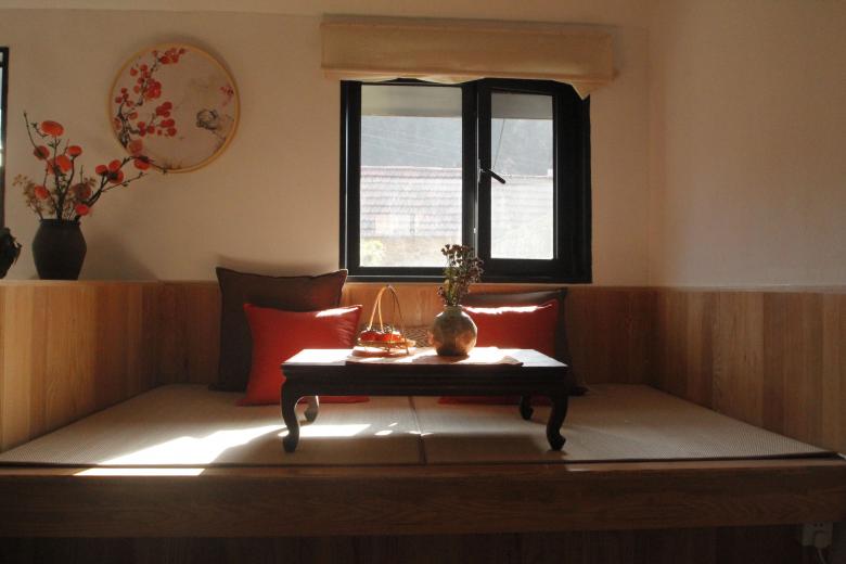 For the walls, regional traditional techniques of stone-laying and wooden fence have also been used. The newly laid stones, the formerly laid stones and the original tiger skin stone walls have altogether formed a dialogue of the traditional construction techniques through time and space. The clearings at the foot of the mountains behind the buildings are tidied up to be the backyard of the guesthouse, with meadow, catalpa trees and a swing, private and cozy.