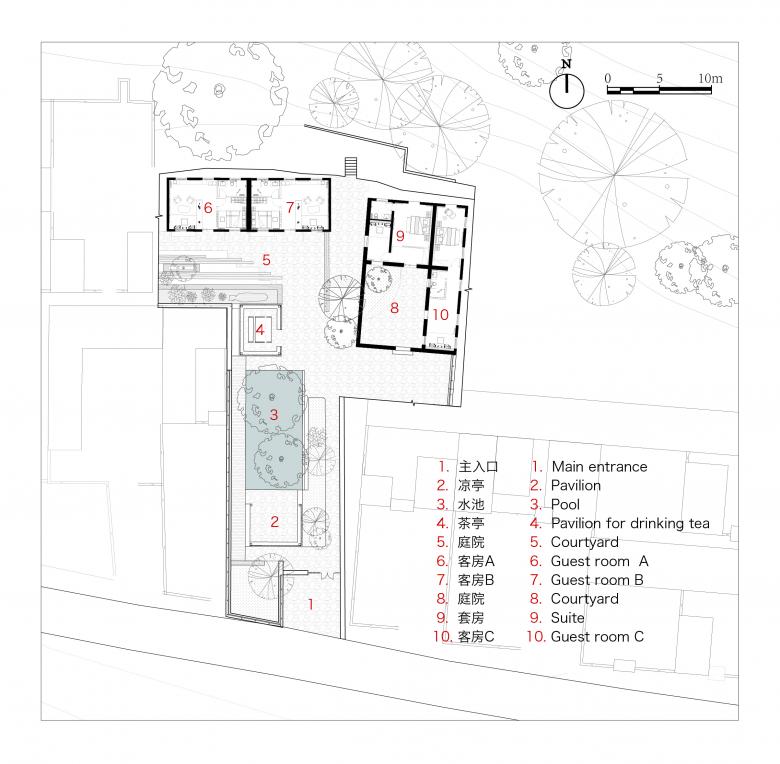 Our design conception is to create a kind of countryside garden aura of a north Chinese village. “Countryside” doesn’t mean wilderness, and “garden” not courtyard, which should have a sense of design and some literati atmosphere. Therefore, the trees, mountains and stones found in the process of site investigation and selection have gained significance, which will be the main scenery elements in the garden and new spaces for appreciation and enjoyment.