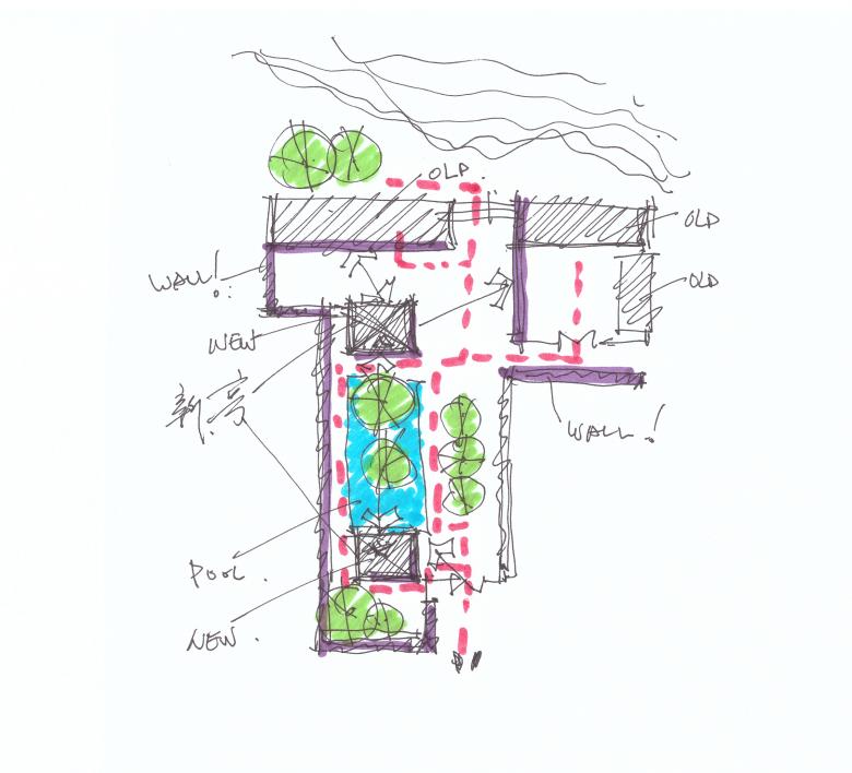 The two pavilions at both ends of the pool are newly attached parts, providing the dwellers with semi-outdoor space and becoming the opposite scenery spots and control points in the space. The traditional official architectural form has not been indiscriminately applied to the pavilions, but modernity and regionality. Single-pitch roof and traditional masonry base with wooden grill windows, it’s not vintage-styled, but has a taste of countryside.