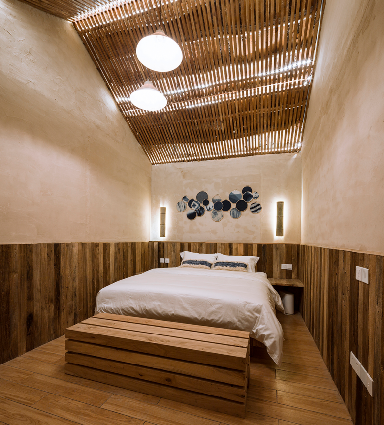 Since ancient times, a complete life is subject to harmony in itself, family, society, nature, philosophy and many other aspects.In this regard, the design team tried to maintain the original appearance of the original building in the renovation process, and respected the typical cultural characteristics of Jiaodong dwellings through the design method of "micro-renovation".The design team skillfully utilized the relationship between the natural environment and the original building to achieve the symbiosis between the building and the environment.As the holiday season approaches, travel has become a leisure activity for many families.The designer hopes that this transformation can bring an unforgettable journey of Chinese culture to the public, where people can let their minds rest between mountains and rivers and forget themselves between literature and music.