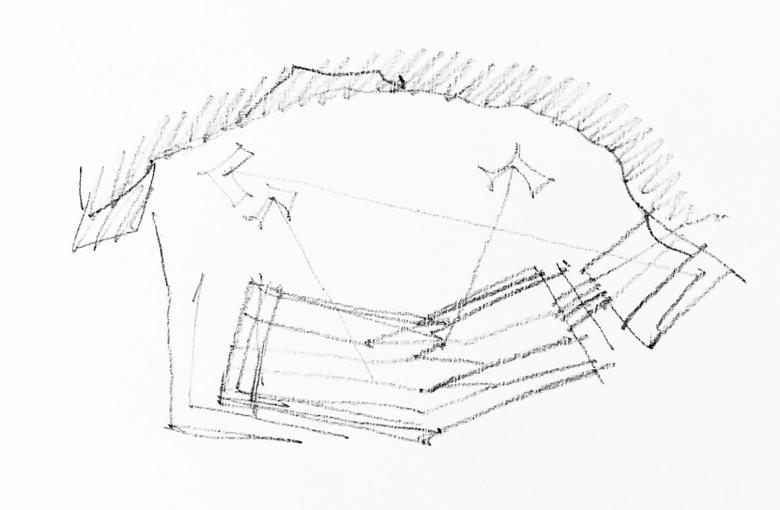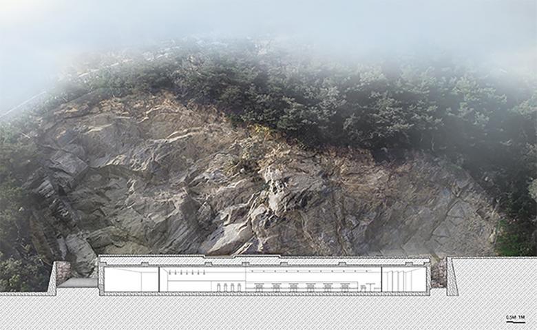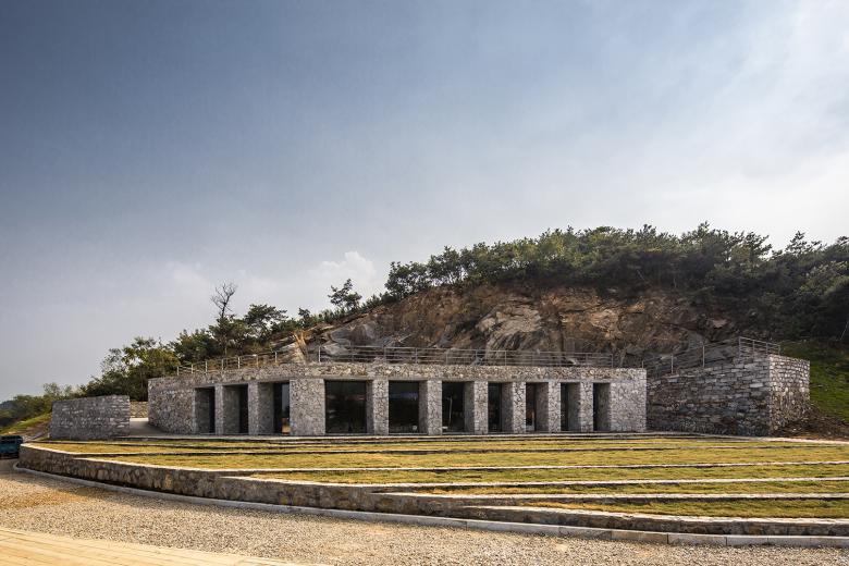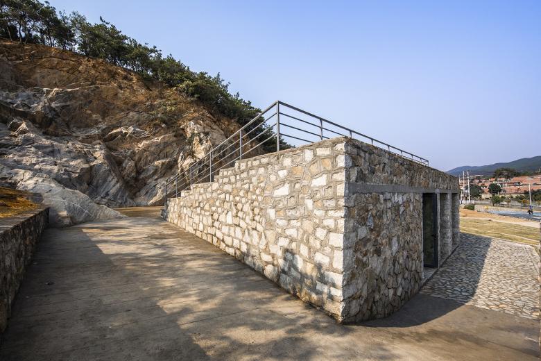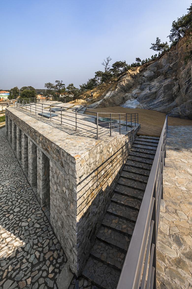 During the site exploration, the design team found this abandoned stone pit by accident and was amazed by its charm. After years of erosion through the time, this relatively small stone pit, in a form of a naturally curved hand, renders a presence of some kind of artificial nature with its old traces of quarrying. The architect has been especially impressed by the exposed jagged precipice and steep cliff. How to transfer this stone pit that once ruined the environment into a public place that will benefit the local people? That has been the biggest question of this project.
