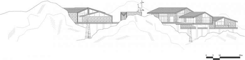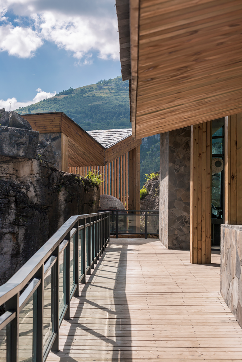 As mentioned above, the relationship between buildings and environment is the starting point of the Tourist Center. The buildings have been inserted into the rocks, and merged with the environment with local architectural form and materials. At the same time, the building is the most important scenic spot and ornamental point in the entire canyon, illustrating the significance of the transformation between void and solid of the appearance. It is the mode of transformation that plays the key role as an important design language to distinguish from the traditional vernacular buildings.