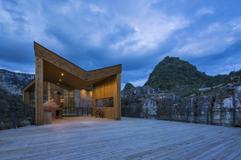 In 2016, 3andwich Design / He Wei Studio was invited to participate in the planning and design of the Resort, and was in charge of designing a unique group of buildings: the Tourist Center of Anlong Limestone Resort.