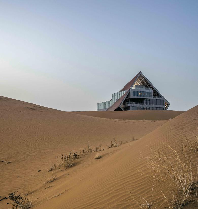 The project is located in the Tengger Desert of Zhongwei City, Ningxia, China which provides supporting services for a tent camp and also serves as the main building of the camp.