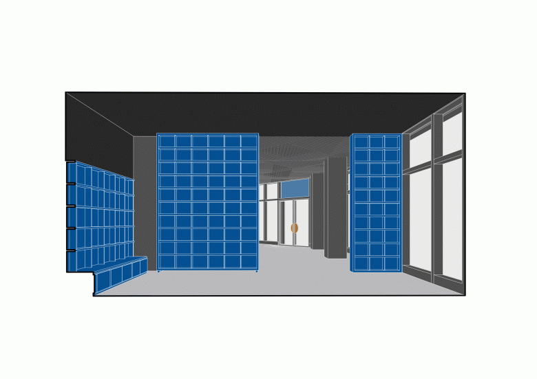 这些都给书店的经营带来的困难,所幸场地本身位于街角,建筑外立面为玻璃幕墙,西侧和南侧为人行道,西南角有斜切,这给予了书店优越的对外展示面,也使室内空间拥有270°的视域。