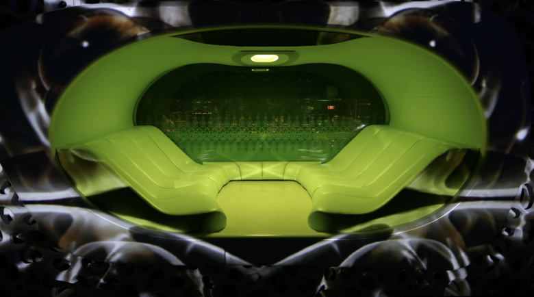Club- und Restaurant Design – Der CocoonClub wurde als avantgardistisches Experimentierfeld für die Transformation von Raum und Wahrnehmung konzipiert. In einem interdisziplinären Prozess gestaltete 3deluxe alle Elemente zu einem ganzheitlichen Raum, in dem sich Architektur, grafisches Programm sowie Medien- und Webdesign wechselseitig beeinflussen.