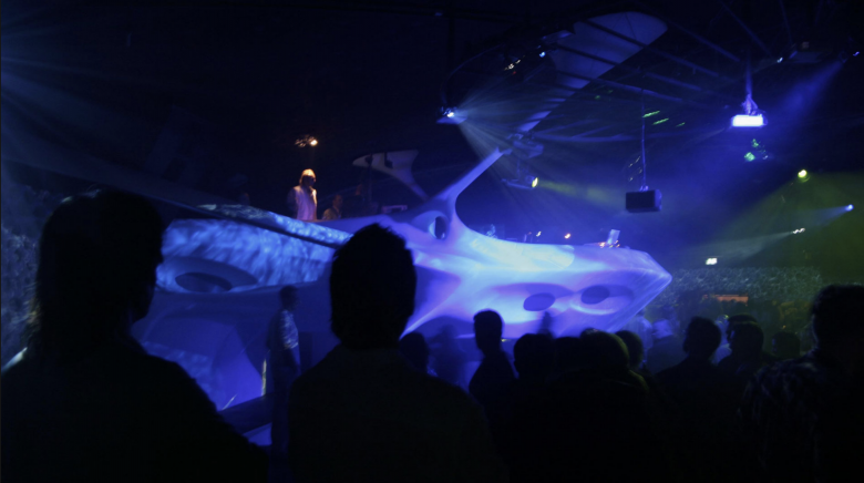 Augenfälligstes Element des CocoonClub stellt die imposante weiße DJ-Kanzel dar. Von ihrem erhöhten Standpunkt aus dirigieren DJ und VJ die multimediale Inszenierung des Raumes.