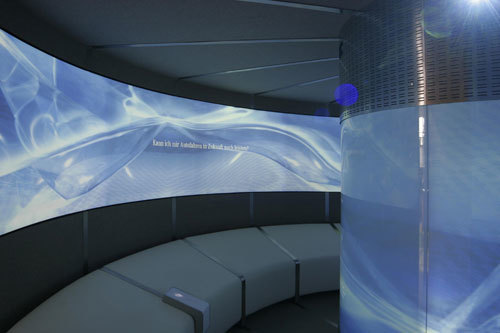 Mobiler Ausstellungspavillon – Angesichts schwindender Rohstoffressourcen und zunehmender Umweltbelastung engagiert sich Mercedes-Benz in der Erforschung umweltfreundlicher Antriebskonzepte. Die multimediale Ausstellungsinszenierung „Antriebe der Zukunft“ machte diese in ihren technischen und gesellschaftlichen Zusammenhängen äußerst komplexe Thematik für Kunden des Automobilherstellers atmosphärisch und intellektuell erfahrbar. Der mobile Pavillon wurde für eine zweijährige Tour durch die großen Mercedes-Benz Center in Europa geplant.