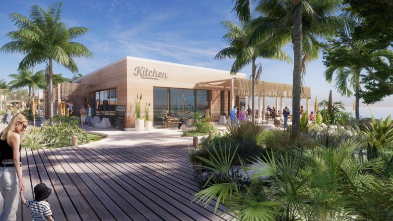 3deluxe entwickelt zurzeit östlich der Metropolregion Dubai eine urbane Strandoase mit starkem Fokus auf Nachhaltigkeit. Die städtebauliche Maßnahme erstreckt sich über 1,3 Kilometer entlang der Küstenlinie von Kalba Beach und besteht aus mehr als 15 Gebäuden für Restaurants, Cafés und Verwaltung, öffentliche Services sowie E-Mobility.