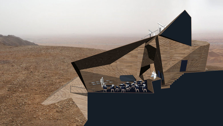 An einem der heißesten Orte der Erde, inmitten der unberührten Wüstenlandschaft von Sharjah, wird ein expressives Bauwerk von 3deluxe realisiert. Auf dem Kamm der Jebel Fayah Bergkette ist ein Aussichtsgebäude mit Observatorium und naturkundlicher Ausstellung geplant.