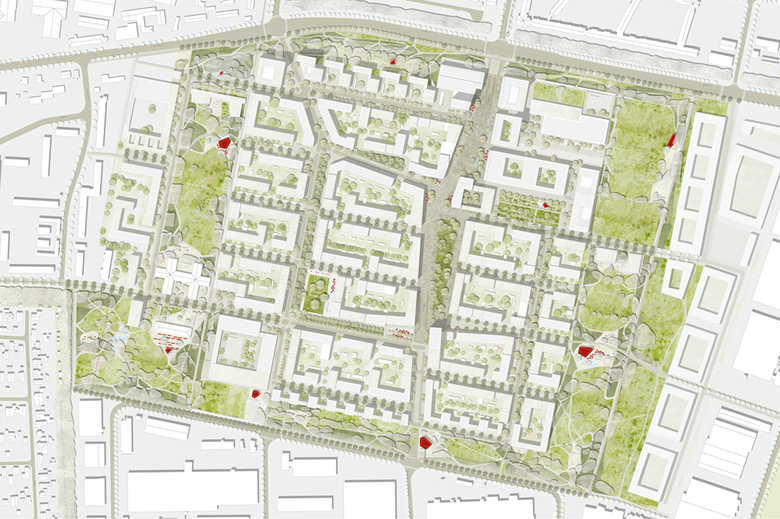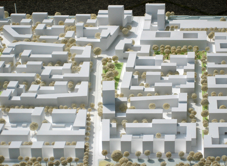 Masterplan für die Umstrukturierung das 48 ha grosse ehemalige Kasernenareal in ein stark verdichtetes neues Stadtquartier für 10‘000 Einwohner und lokalen Zentrumsaufgaben.