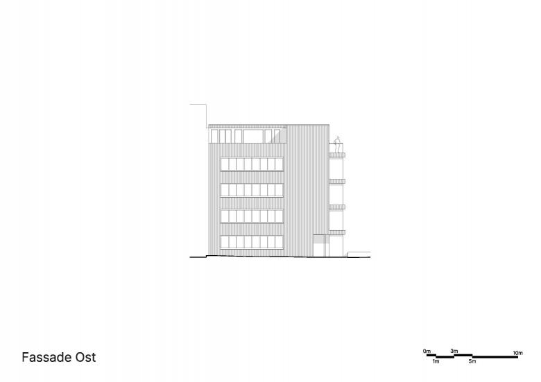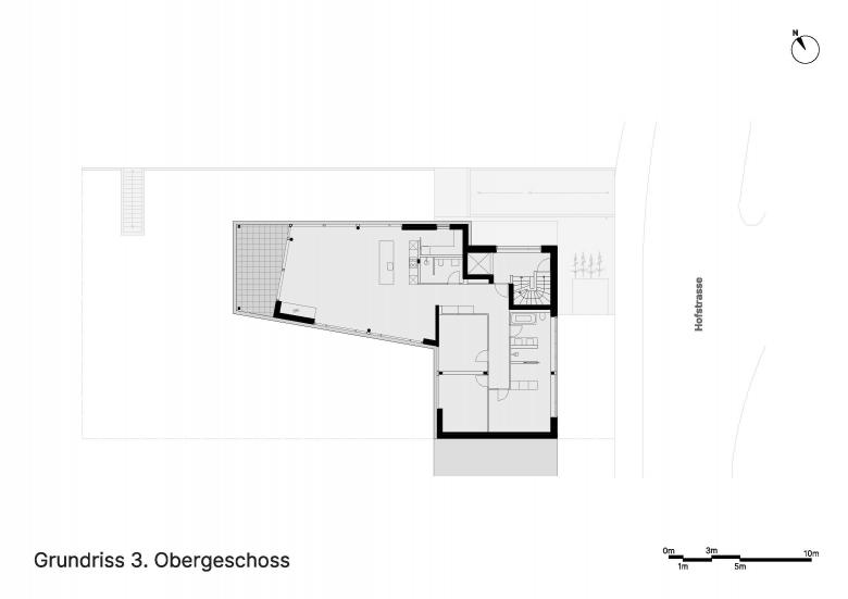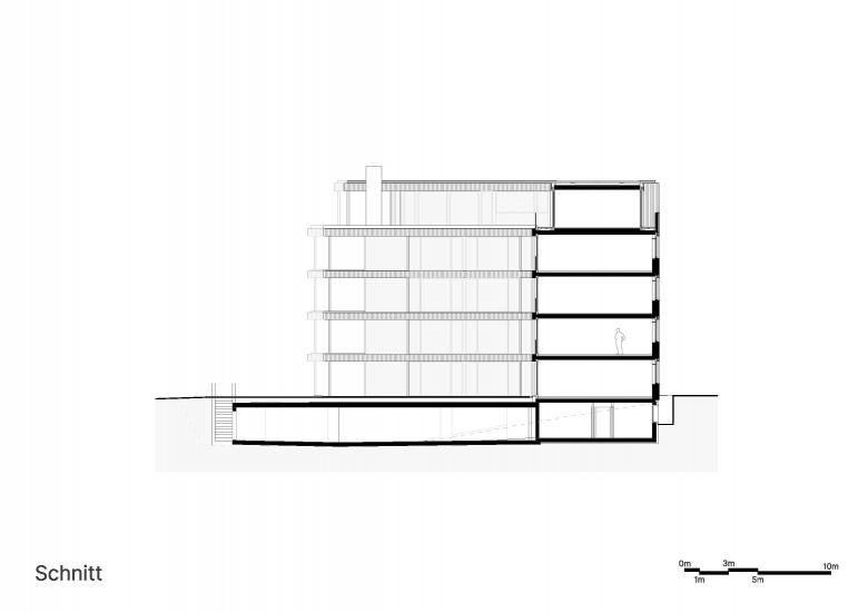 Das Gebäude mit fünf Eigentumswohnungen bietet Sicht auf den Rhein und grenzt an das unverbaubare Grüngebiet „Rheinpark“ in der Nähe der Kraftwerkanlage Birsfelden. Das winkelförmige Gebäude ist Abschluss des Strassenzuges der Hofstrasse. Das Gebäude zeichnet sich durch seine einzigartige Form und Fassadenstruktur mit hinterlüfteten Cortenstahl-Lamellen aus. Die Gebäudehülle ist energetisch optimiert, die Wohnungen haben gehobenen Ausbaustandard mit Komfortlüftung. Vom Erdgeschoss bis ins 3. Obergeschoss befinden sich 4 4.5-Zimmer-Wohnungen, im Attika eine 3.5-Zimmer-Wohnung mit grosser Terrasse. Wohnen, Essen und Kochen der Wohnungen sind auf die Flusslandschaft ausgerichtet.