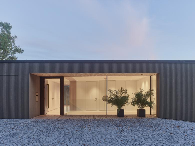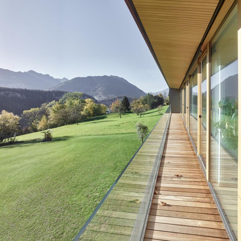 Ein klar geschnittenes Haus unterhalb des Wildparks am Waldrand. Der Rand der Siedlung endet hier und soll durch die neue Bebauung definiert werden. Entlang des Waldfußes gelangt man zum Eingang des Gebäudes. Das Haus ist ganztägig Wohn- und Arbeitsort und bietet Raum für mehrere Generationen. Über zwei Geschosse schaffen Lufträume eine vielschichtige Raumwahrnehmung. Das Haus, seine Zugänge, Blickbeziehungen und Atmosphären schaffen eine natürliche Verbindung zur umgebenden Landschaft, in die es feinsinnig eingebettet ist. Die Raumabfolgen orientieren sich am Verlauf des Lichteinfalls. Besonderes Augenmerk wurde auf den Einsatz ökologischer Baumaterialien und regionale Wertschöpfung gelegt.