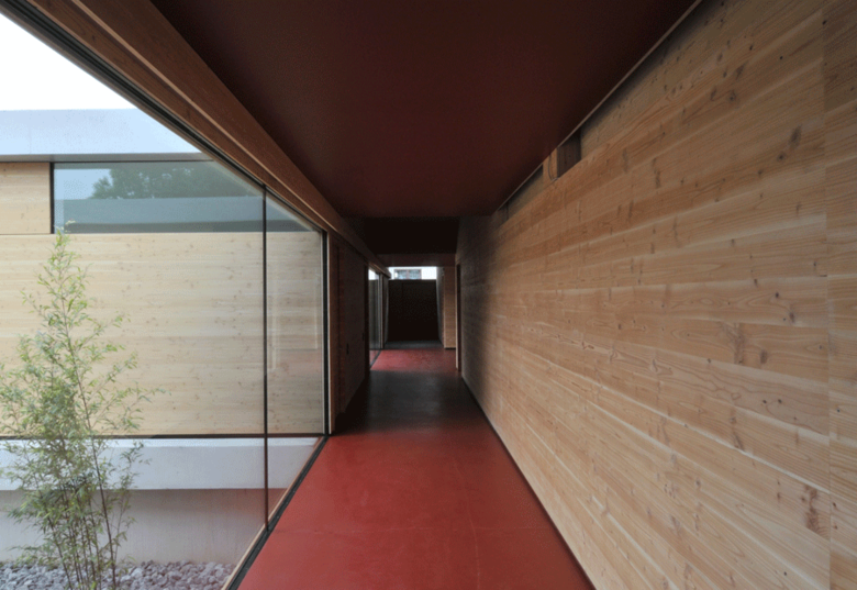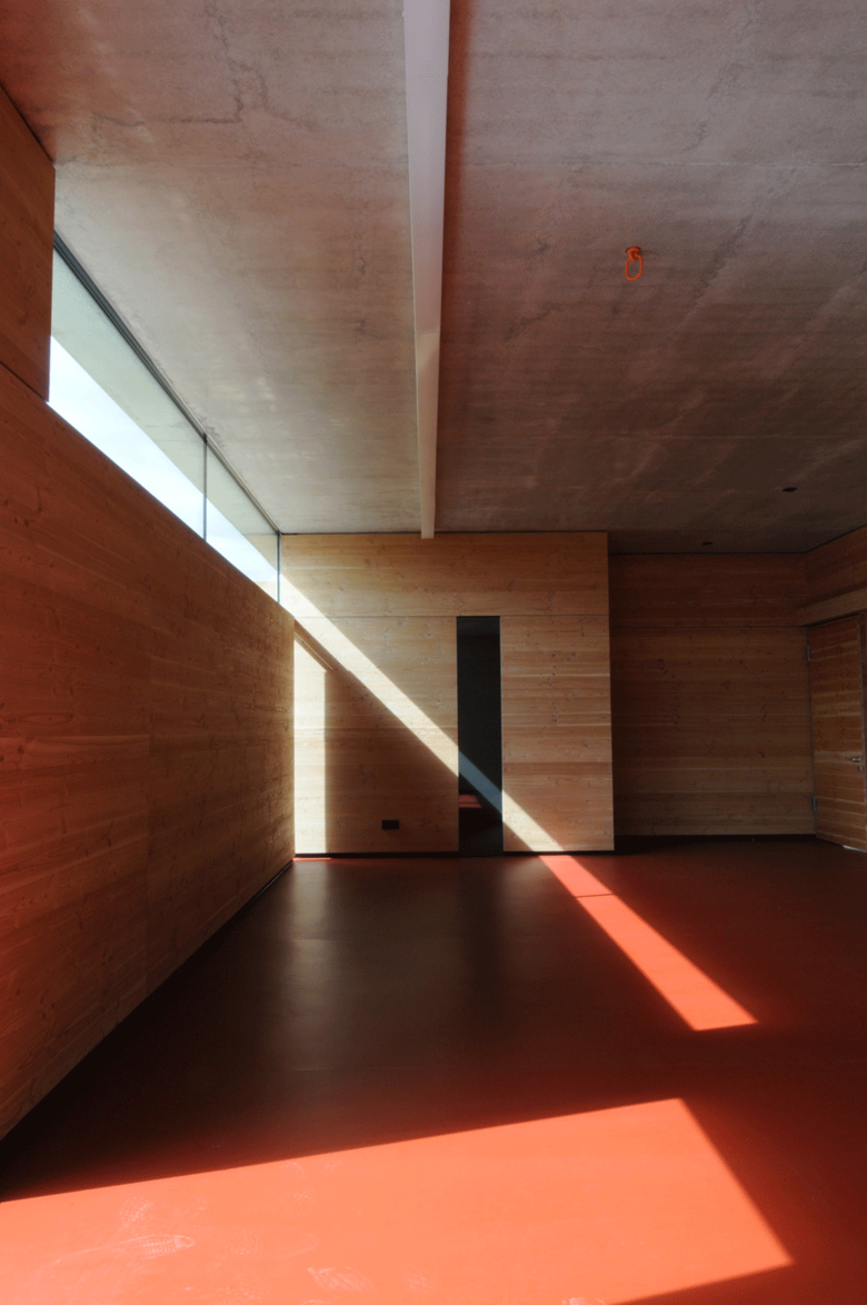 Eine Betreuungsgruppe für 28 schwerstbehinderte Menschen zu planen war die Aufgabe, die der Bauherr 2003 an uns stellte. Beim Entwerfen des Hauses haben wir versucht, uns mit Hilfe von Fragen in die Menschen mit Behinderungen hineinzuversetzen. Daraus entwickelte sich das Konzept einer klaren und überschaubaren Struktur. Daneben spielen Farben und Materialien eine wichtige Rolle. Sie erzeugen Stimmungen und Gefühle oder lösen Handlungen aus. Außer den wenigen notwendigen Vorrichtungen weist nichts im Gebäude auf die Nutzung durch Menschen mit Behinderungen hin. Es sollte ein Haus der Normalität und Autonomie geschaffen werden, in dem ein selbstständiges und eigenverantwortliches Leben möglich ist.