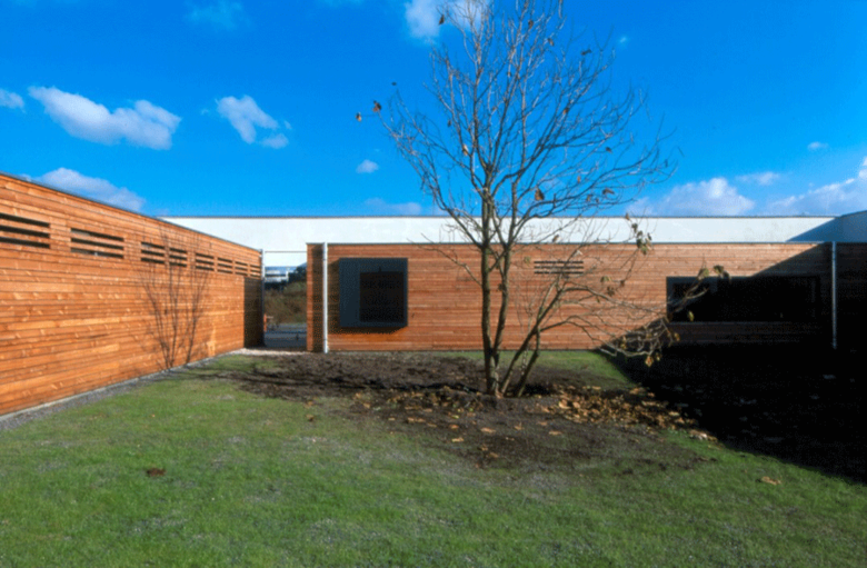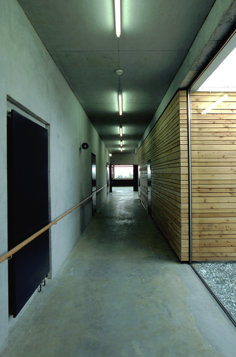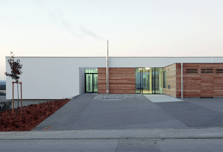 Das Baugrundstück befindet sich in einem Industriegebiet und ist gekennzeichnet durch das Fehlen jeglicher städtebaulicher Bezugspunkte. Entwickelt wurde eine klar strukturierte Anlage, bei der sich die Nutzungen im Erdgeschoss um einen begrünten Innenhof legen. Die Flure, im Außenbereich fortgeführt, bilden einen zusammenhängenden Umgang durch das Gebäude. Das bestehende Gefälle des Grundstücks nutzend, wurde die Anlage zum Teil dreigeschossig ausgebildet. Im Zwischengeschoss befindet sich der Verwaltungsbereich, im Untergeschoss sind weitere Werkstatträume und ein zweigeschossiges Hochregallager untergebracht.