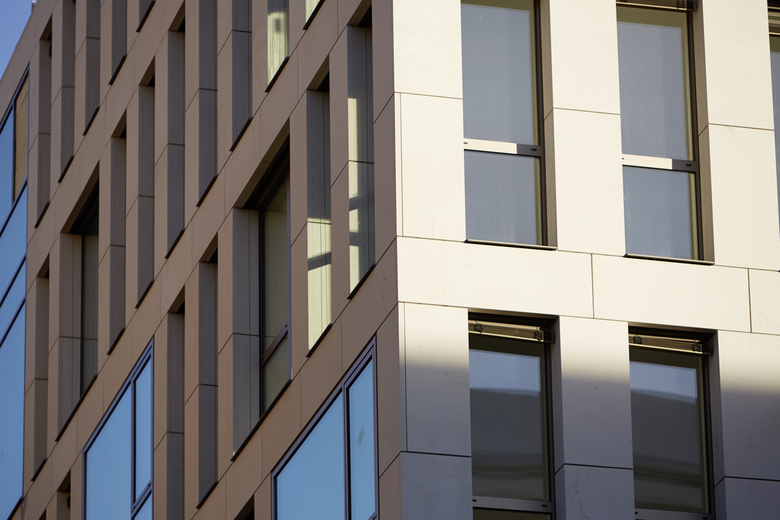 Das mischgenutzte Gebäude P3 ist mit seinen 7.200 Quadratmetern ein wichtiger Baustein in Mannheims Innenstadt – in Form und Funktion. Ein Bauwerk, das das Angebot auf den Planken perfekt ergänzt. Neben Verkaufsflächen entstanden vier Geschosse mit Büros und Wohnungen inklusive Terrassen im Staffelgeschoss. Die Fassade wird durch die Geschossdecken und die Fassadenstützen mit ihren unterschiedlichen Rasterabständen bestimmt. Die massive Gitterstruktur aus hellem (Schönbrunner) Main-Sandstein interpretiert die stadtbildprägende Lochfassade neu. Die zweigeschossige Schaufensterfassade schafft Transparenz auf den Handelsflächen. Das Gebäude schließt ein für Mannheim typisches Quadrat und schafft damit zugleich eine attraktivere Innenhofsituation.