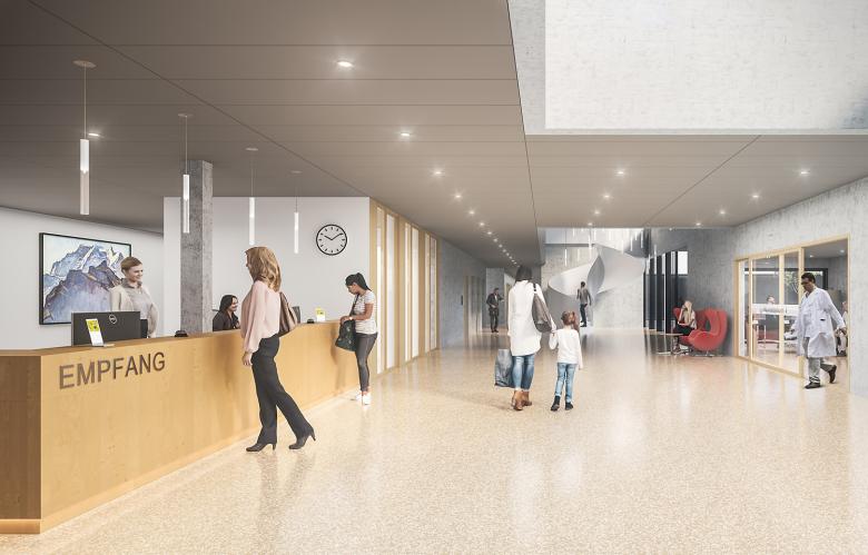 Das Spital Interlaken mit Gebäudeteilen von 1905–1974 wird seit 2012 einer umfassenden Erweiterung und Erneuerung unterzogen. Als letzte Bauetappe wird das Haus E, der älteste Gebäudekomplex auf dem Spitalcampus, samt Haupteingang etappenweise rückgebaut und durch einen Neubau ersetzt. Dem Architekturwettbewerb, den wir im 2015 für uns entscheiden konnten, soll demnächst, nach längerer Planungsphase, die Umsetzung unter vollem Spitalbetrieb folgen.