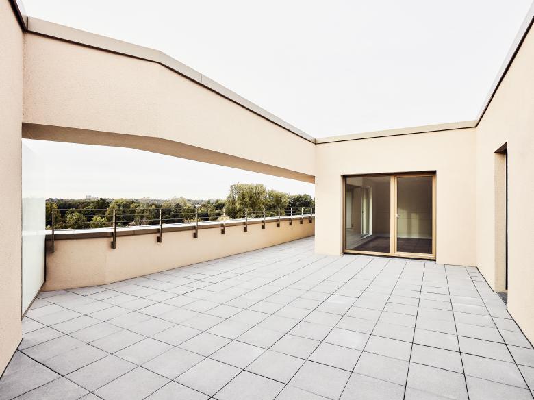 Sämtliche Wohnräume und Freisitze sind nach Süden und Südwesten in Richtung des Flusses orientiert. Den Erdgeschosswohnungen sind private Gärten zugeordnet.