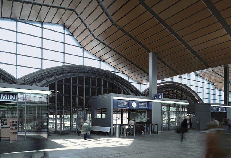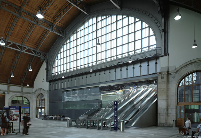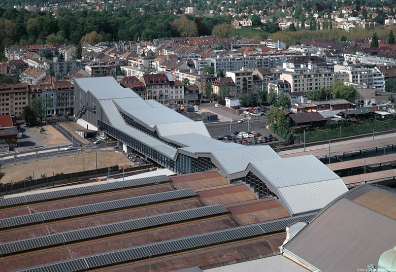 levado, una pasarela que alberga comercios y otros servicios, devolviendo al antiguo vestíbulo el protagonismo perdido. Visible desde varios puntos de la ciudad, la silueta de la cubierta es la principal responsable de la imagen renovada de la estación, que se presenta transversal al recorrido del tren como si se tratara de una estación término. La construcción hubo de hacerse sin interrumpir el normal