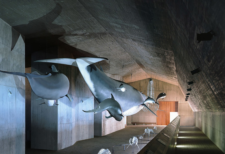 A través de un porche se accede al vestíbulo de entrada, en el inicio de la larga nave a la que se conectan diversas salas adyacentes dedicadas a temas específicos relacionados con el mar. Desde dicha nave -iluminada desde su parte baja por la luz reflejada en el agua- el visitante accede a los otros espacios complementarios. El retorno se efectúa a través de la gran sala, por una pasarela algo elevada, que permite una mejor visión de las piezas expuestas. Será sólo al final del recorrido cuando se descubra el estanque lineal de agua en el que la luz se reflejaba.